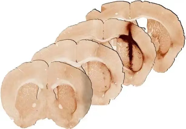 与注射不含肌红蛋白的水凝胶相比,注射含肌红蛋白的水凝胶的小鼠脑组织显示出更为健康的状态。图片来源:墨尔本大学
