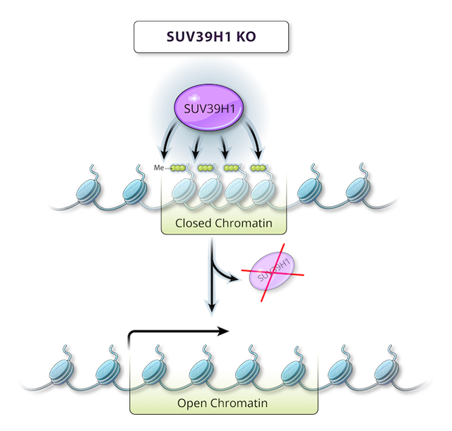 SUV39H1是一种H3K9甲基转移酶,介导H3K9甲基化,从而抑制多个基因的表达。研究团队认为,与其试图改变所有这些被抑制的基因的表达,不如专注于破坏SUV39H1,从而同时微调被其抑制的多个基因的表达,以增强T细胞功能。
